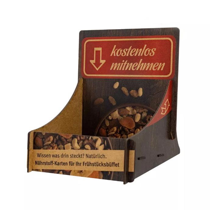 Unser Thekendisplay Wood besteht aus 100% PEFC zertifizierten MDF Platten.